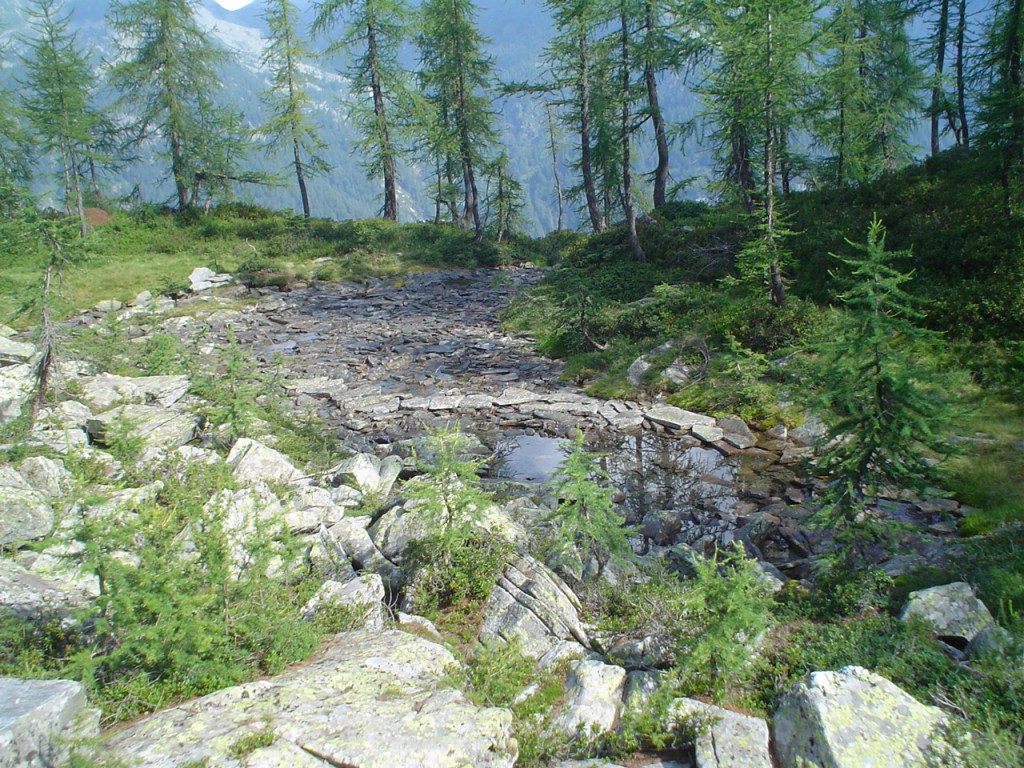 I crossed this path through a shallow creek many times with a mule loaded with cheese, butter and ricotta we made on the Alp. Each slab of granite made a different sound under hooves of the mule. Every time the mule made a slightly different melody and the reflections in the water continually changed. “Pantha Rhei”, Everything flows.